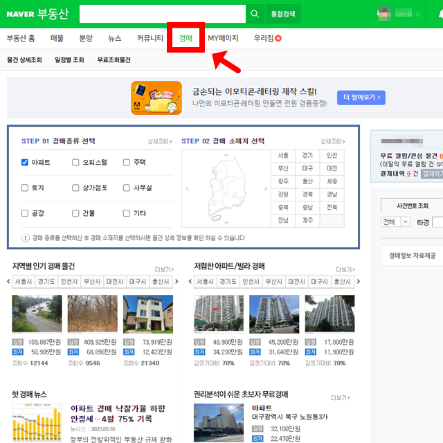 네이버 부동산(경매 탭)