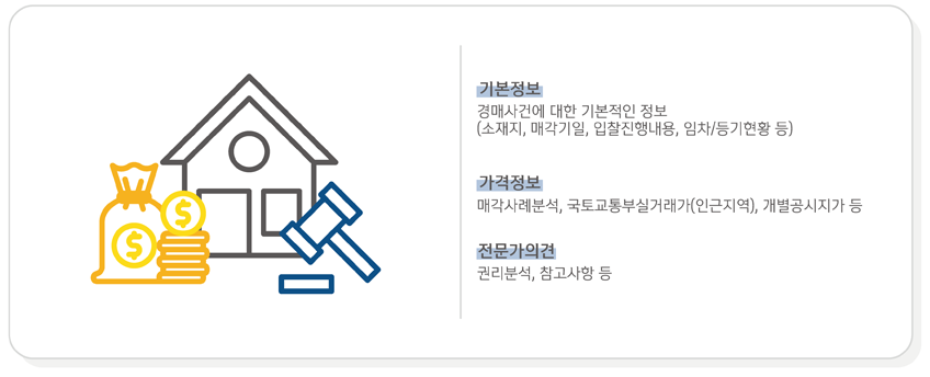 경매에 대한 용어, 절차, 입찰방법 등을 조회 가능합니다.