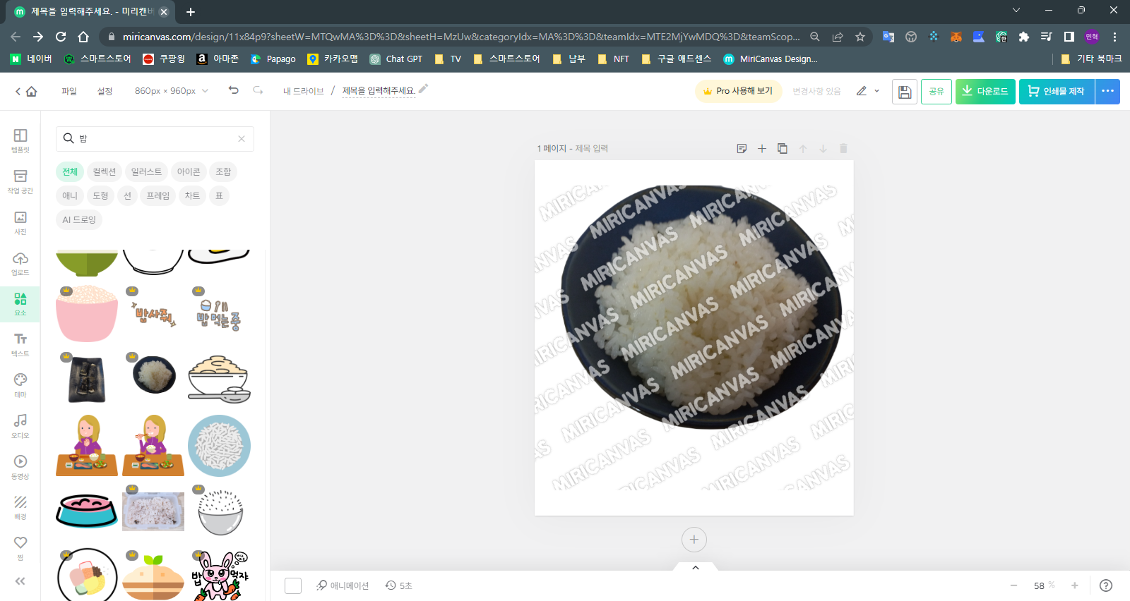 미리캔버스 안에 있는 여러 템플릿, 사진, 일러스트 등을 이용해 이미지를 꾸밀 수 있는데 바로 여기에 사용되는 사진 이미지를 판매하는 겁니다.