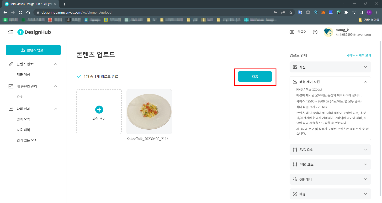 -PNG파일 규격에 맞춰 사진의 사이즈, 파일크기를 확인(우측 사이드바)