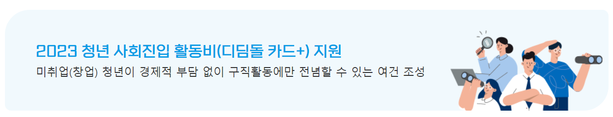 ◈ 2023 청년 사회진입 활동비(디딤돌 카드+) 지원사업 2차 모집 안내(공고문 등) → PDF ◈
