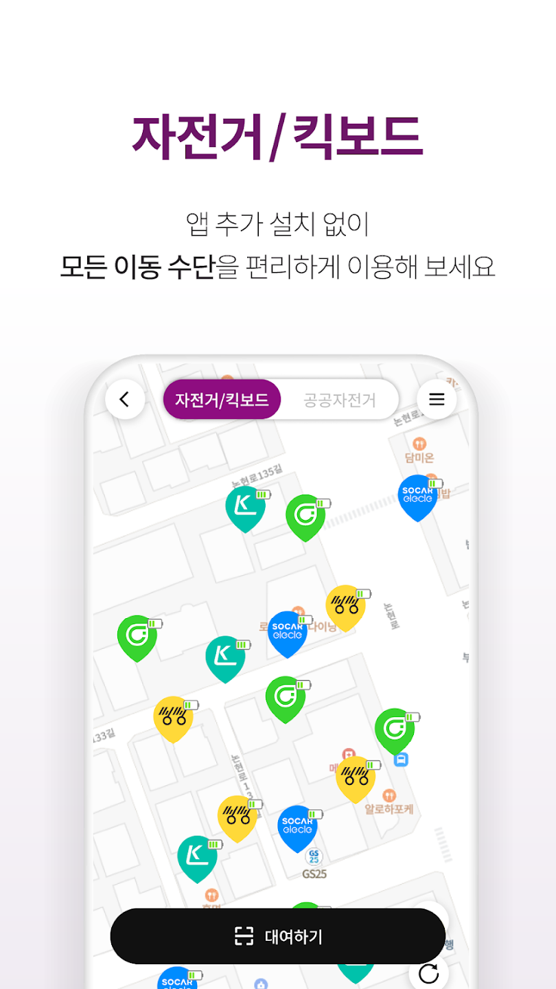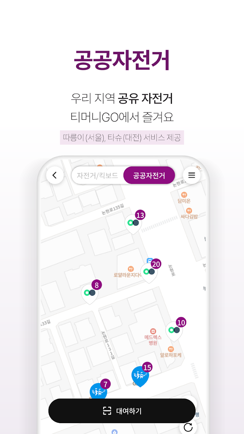 따릉이는 별도의 추가 요금으로 이용할 수 있으며, 티머니GO 앱을 통해 연동됩니다.