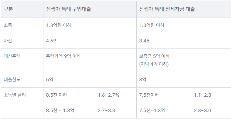 [신생아 특례 대출 / 전세자금대출 비교]