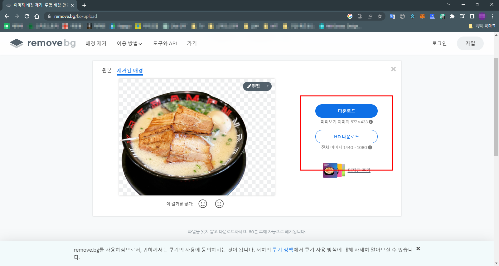 3. 사진을 선택하면 바로 이렇게 배경이 제거됩니다.