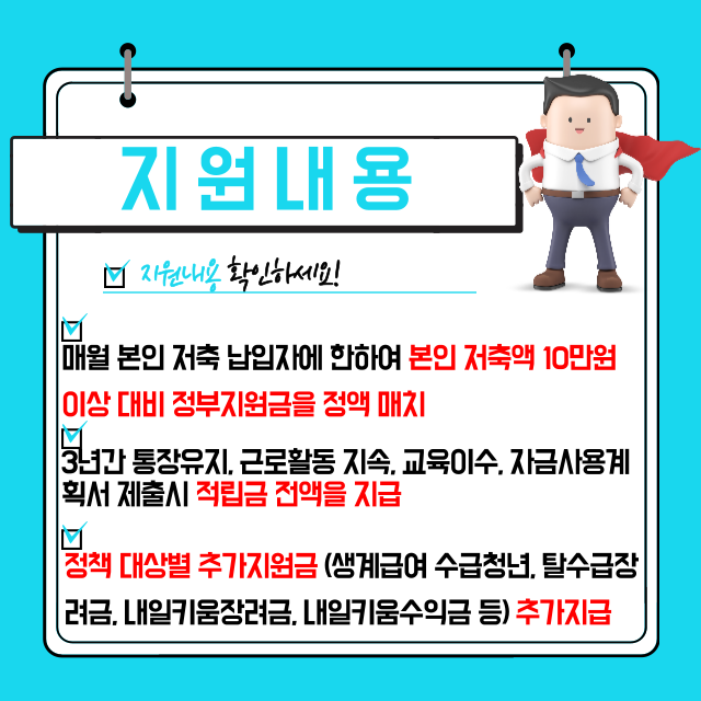 안녕하세요. 이번 포스팅에서는 청년계층의 자산형성과 경제적 자립을 돕고자 출시된 청년내일저축계좌에 대하여 알아보겠습니다.