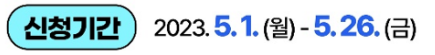 신청기간은 23.05.01.(월) ~ 23.05.26.(금)까지 주소지 내 주민센터에서 신청할 수 있습니다. 그리고 15부터는 온라인에서도 신청할 수 있는데요. 온라인 신청 링크는 글 하단에 안내해 드리겠습니다.