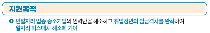 - 제조업 외 빈일자리 업종(농업, 음식점업, 해운업, 수산업 업종의 중소기업)
