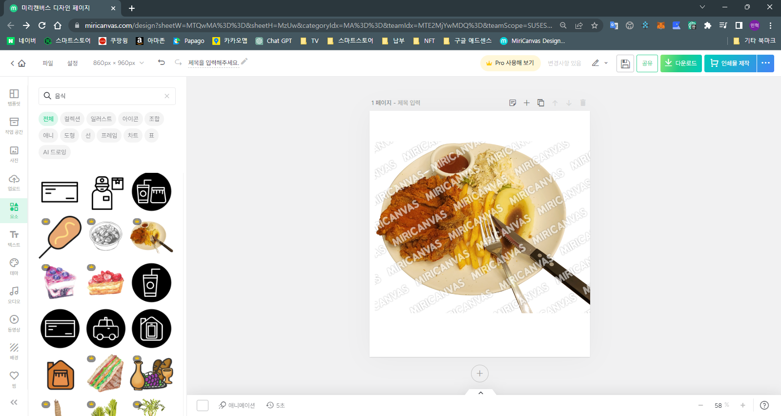 미리캔버스 안에 있는 여러 템플릿, 사진, 일러스트 등을 이용해 이미지를 꾸밀 수 있는데 바로 여기에 사용되는 사진 이미지를 판매하는 겁니다.