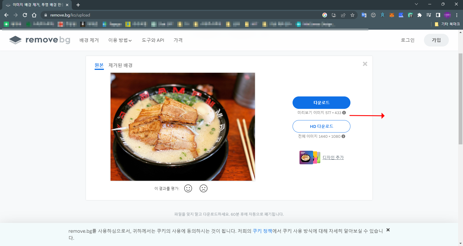 3. 사진을 선택하면 바로 이렇게 배경이 제거됩니다.